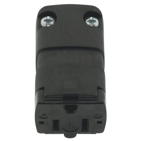 Straight Blade Connector, 5-15R, 15 A, 125V AC, 2 Pole, 3 Wire, Spring Clamp Terminals, Black