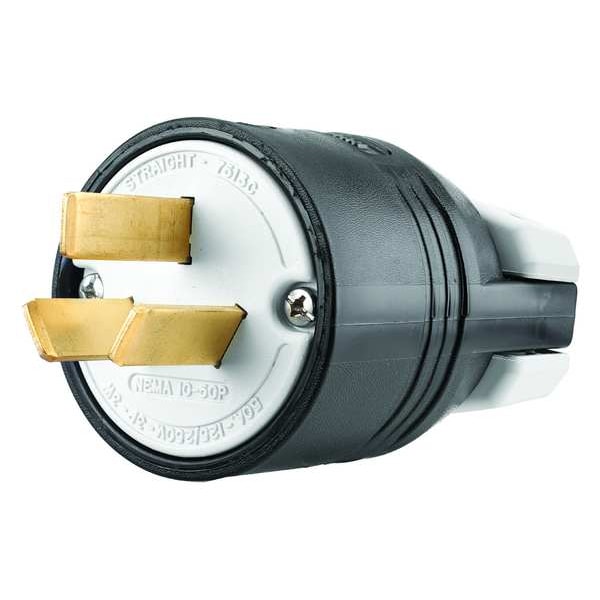 Straight Blade Plug, Connection Orientation Straight, Current Rating 50 A, Grounding Non-Grounded, Horsepower Rating 2 hp, 3 hp, Housing Color Black, IP Rating Not Rated, NEMA Plug Configuration 10-50P, Number of Blades 3, Number of Poles 3, Phase Single, Polarized Yes, Resistance Properties Chemical Resistant, Impact Resistant, Voltage Rating 125/250V AC, Wire Connection Type Screw Terminals, Wiring Style Standard, For Maximum Cable Diameter 1.32 in, For Minimum Cable Diameter 0.425 in