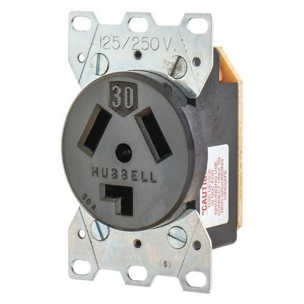 Receptacle, Connection Orientation Straight, Cover Type No Cover, Current Rating 30 A, GFCI No, Grounding Grounded, Housing Color Black, Housing Material Thermoplastic, Mount Type Flush, NEMA Receptacle Configuration 10-30R, Number of Gangs 1, Number of Poles 3, Number of Wires 3, Phase Single, Polarized Yes, Receptacle Type Single, Standards CSA Certified, UL Listed, Voltage Rating 125/250V AC, Wire Connection Type Screw Terminals, Wiring Method Side, AFCI No, Horsepower Rating 2 hp