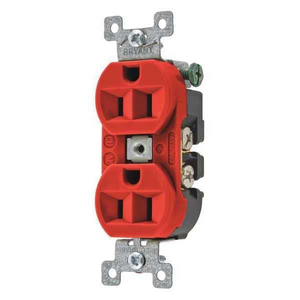 Receptacle, Connection Orientation Straight, Cover Type No Cover, Current Rating 15 A, GFCI No, Grounding Grounded, Housing Color Red, Housing Material Composite, Thermoplastic/Composite, Mount Type Flush, NEMA Receptacle Configuration 5-15R, Number of Gangs 1, Number of Poles 2, Number of Wires 3, Phase Single, Polarized Yes, Receptacle Type Duplex, Resistance Properties Corrosion Resistant, Standards CSA Certified C22.2, Federal Specification W-C-596, NEMA WD-6, UL E2186