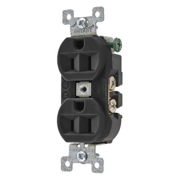 Receptacle, Connection Orientation Straight, Cover Type No Cover, Current Rating 15 A, GFCI No, Grounding Grounded, Housing Color Black, Housing Material Composite, Thermoplastic/Composite, Mount Type Flush, NEMA Receptacle Configuration 5-15R, Number of Gangs 1, Number of Poles 2, Number of Wires 3, Phase Single, Polarized Yes, Receptacle Type Duplex, Resistance Properties Corrosion Resistant, Standards CSA Certified C22.2, Federal Specification W-C-596, NEMA WD-6, UL E2186