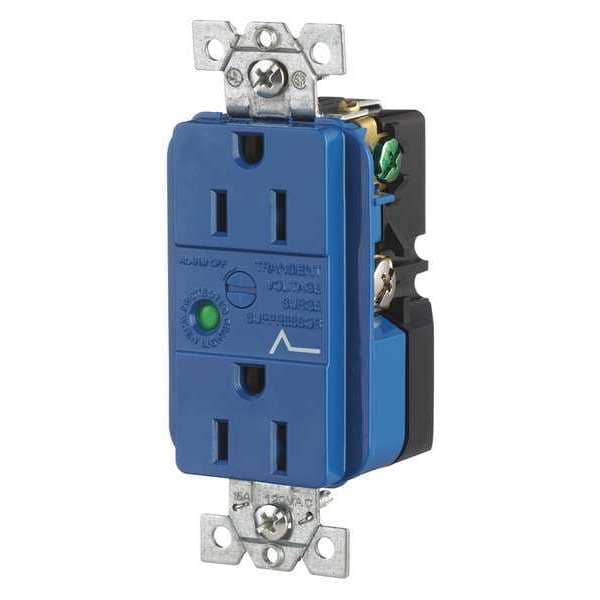 Receptacle, Connection Orientation Straight, Cover Type No Cover, Current Rating 15 A, GFCI No, Grounding Grounded, Housing Color Blue, Housing Material Composite, Mount Type Flush, NEMA Receptacle Configuration 5-15R, Number of Gangs 1, Number of Poles 2, Number of Wires 3, Phase Single, Polarized Yes, Receptacle Type Duplex, Resistance Properties Impact Resistant, Standards CSA Certified, UL Listed, Voltage Rating 125V AC, Wire Connection Type Screw Terminals, Wiring Method Back, Side, AFCI No