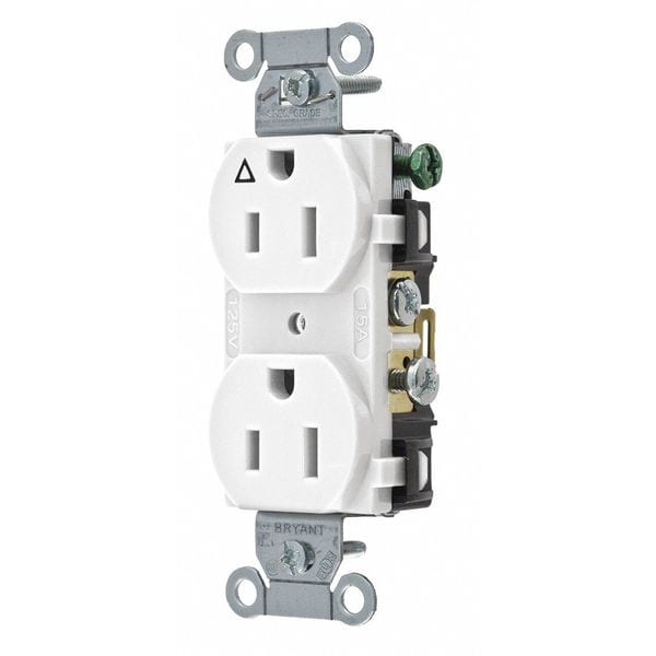 Receptacle, Connection Orientation Straight, Cover Type No Cover, Current Rating 15 A, GFCI No, Grounding Grounded, Isolated Ground, Hazardous Location Specification Not Applicable, Housing Color White, Housing Material Composite, Mount Type Flush, NEMA Enclosure Rating Not Applicable, NEMA Receptacle Configuration 5-15R, Number of Gangs 1, Number of Poles 2, Number of Wires 3, Phase Single, Polarized Yes, Receptacle Type Duplex, Resistance Properties Not Applicable