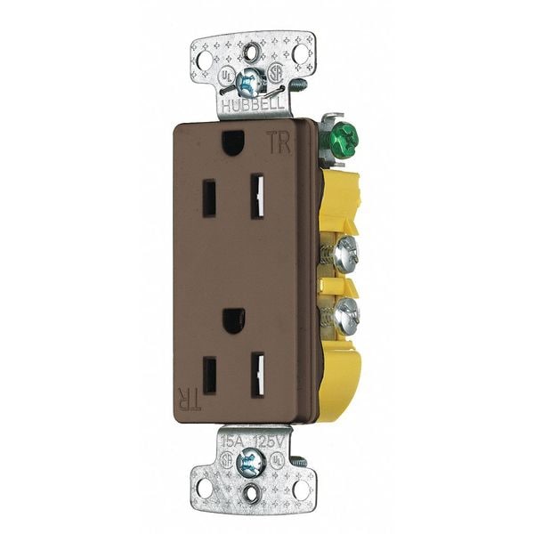 Receptacle, Connection Orientation Straight, Cover Type No Cover, Current Rating 15 A, GFCI No, Grounding Grounded, Housing Color Brown, Housing Material Thermoplastic, Mount Type Flush, NEMA Receptacle Configuration 5-15R, Number of Gangs 1, Number of Poles 2, Number of Wires 3, Phase Single, Polarized Yes, Receptacle Type Decorator Duplex, Resistance Properties Tamper Resistant, Standards CSA Certified, UL Listed, Voltage Rating 125V AC, Wire Connection Type Push In, Wiring Method Back, Side