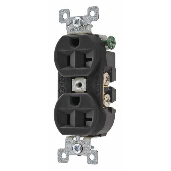 Receptacle, Connection Orientation Straight, Cover Type No Cover, Current Rating 20 A, GFCI No, Grounding Grounded, Housing Color Black, Housing Material Composite, Thermoplastic/Composite, Mount Type Flush, NEMA Receptacle Configuration 5-20R, Number of Gangs 1, Number of Poles 2, Number of Wires 3, Phase Single, Polarized Yes, Receptacle Type Duplex, Resistance Properties Corrosion Resistant, Standards CSA Certified C22.2, Federal Specification W-C-596, NEMA WD-6, UL E2186
