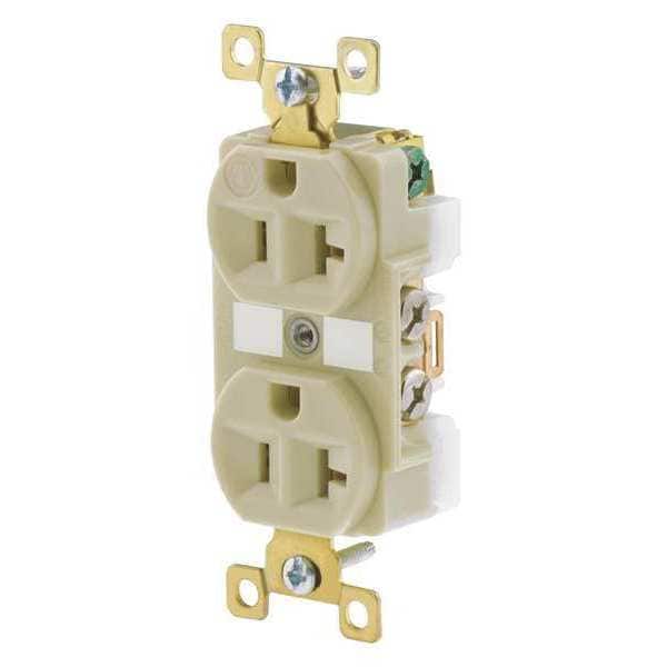 Receptacle, Connection Orientation Straight, Cover Type No Cover, Current Rating 20 A, GFCI No, Grounding Grounded, Housing Color Ivory, Housing Material Nylon, Mount Type Flush, NEMA Receptacle Configuration 5-20R, Number of Gangs 1, Number of Poles 2, Number of Wires 3, Phase Single, Polarized Yes, Receptacle Type Duplex, Resistance Properties Corrosion Resistant, Standards CSA Certified, Federal Specification W-C-59, NEMA WD-1 and WD-6, UL 498, UL Listed, Voltage Rating 125V AC