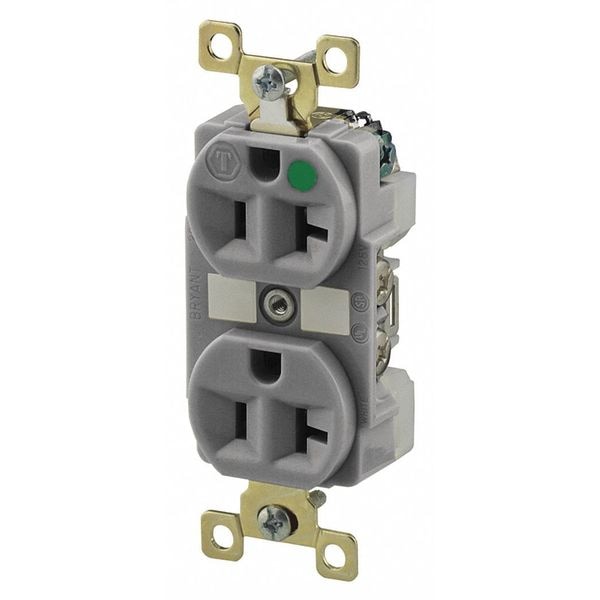 Receptacle, Connection Orientation Straight, Cover Type No Cover, Current Rating 20 A, GFCI No, Grounding Grounded, Housing Color Gray, Housing Material Composite, Mount Type Flush, NEMA Receptacle Configuration 5-20R, Number of Gangs 1, Number of Poles 2, Number of Wires 3, Phase Single, Polarized Yes, Receptacle Type Duplex, Standards CSA Certified, UL Listed, Voltage Rating 125V AC, Wire Connection Type Screw Terminals, Wiring Method Back, Side, AFCI No, Horsepower Rating 1 hp