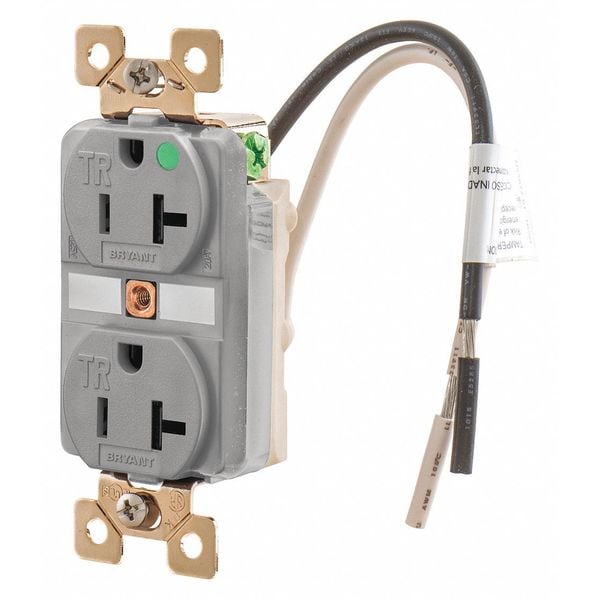 Receptacle, Connection Orientation Straight, Cover Type No Cover, Current Rating 20 A, GFCI No, Grounding Grounded, Housing Color Gray, Housing Material Composite, Mount Type Flush, NEMA Receptacle Configuration 5-20R, Number of Gangs 1, Number of Poles 2, Number of Wires 3, Phase Single, Polarized Yes, Receptacle Type Duplex, Resistance Properties Tamper Resistant, Standards CSA Certified, UL Listed, Voltage Rating 125V AC, Wire Connection Type Screw Terminals, Wiring Method Back, Side, AFCI No