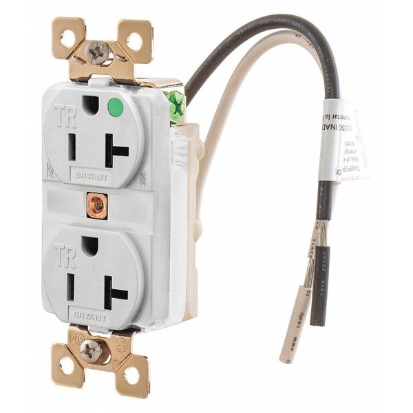 Receptacle, Connection Orientation Straight, Cover Type No Cover, Current Rating 20 A, GFCI No, Grounding Grounded, Housing Color White, Housing Material Composite, Mount Type Flush, NEMA Receptacle Configuration 5-20R, Number of Gangs 1, Number of Poles 2, Number of Wires 3, Phase Single, Polarized Yes, Receptacle Type Duplex, Resistance Properties Tamper Resistant, Standards CSA Certified, UL Listed, Voltage Rating 125V AC, Wire Connection Type Screw Terminals, Wiring Method Back, Side