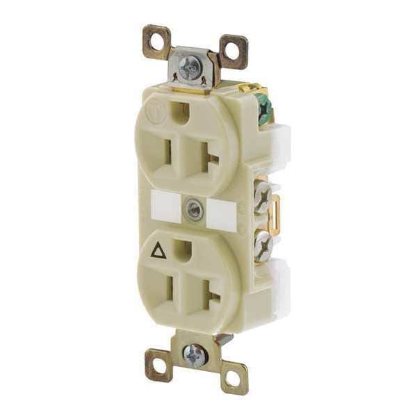Receptacle, Connection Orientation Straight, Cover Type No Cover, Current Rating 20 A, GFCI No, Grounding Grounded, Isolated Ground, Housing Color Ivory, Housing Material Composite, Mount Type Flush, NEMA Receptacle Configuration 5-20R, Number of Gangs 1, Number of Poles 2, Number of Wires 3, Phase Single, Polarized Yes, Receptacle Type Duplex, Resistance Properties Corrosion Resistant, Standards CSA Certified, Federal Specification W-C-59, NEMA WD-1 and WD-6, UL 498, UL Listed