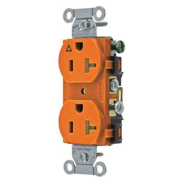 Receptacle, Connection Orientation Straight, Cover Type No Cover, Current Rating 15 A, GFCI No, Grounding Grounded, Isolated Ground, Housing Color Orange, Housing Material Composite, Mount Type Flush, NEMA Receptacle Configuration 5-20R, Number of Gangs 1, Number of Poles 2, Number of Wires 3, Phase Single, Polarized Yes, Receptacle Type Duplex, Standards CSA Certified, Federal Specification, UL Listed, Voltage Rating 125V AC, Wire Connection Type Screw Terminals, Wiring Method Back, Side
