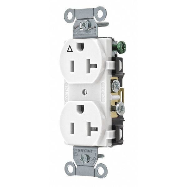 Receptacle, Connection Orientation Straight, Cover Type No Cover, Current Rating 15 A, GFCI No, Grounding Grounded, Isolated Ground, Housing Color White, Housing Material Composite, Mount Type Flush, NEMA Receptacle Configuration 5-20R, Number of Gangs 1, Number of Poles 2, Number of Wires 3, Phase Single, Polarized Yes, Receptacle Type Duplex, Standards CSA Certified, Federal Specification, UL Listed, Voltage Rating 125V AC, Wire Connection Type Screw Terminals, Wiring Method Back, Side