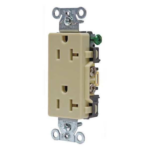 Receptacle, Connection Orientation Straight, Cover Type No Cover, Current Rating 20 A, GFCI No, Grounding Grounded, Housing Color Ivory, Housing Material Composite, Mount Type Flush, NEMA Receptacle Configuration 5-20R, Number of Gangs 1, Number of Poles 2, Number of Wires 3, Phase Single, Polarized Yes, Receptacle Type Decorator Duplex, Resistance Properties Impact Resistant, Standards CSA Certified, Federal Specification, UL Listed, Voltage Rating 125V AC, Wire Connection Type Screw Terminals