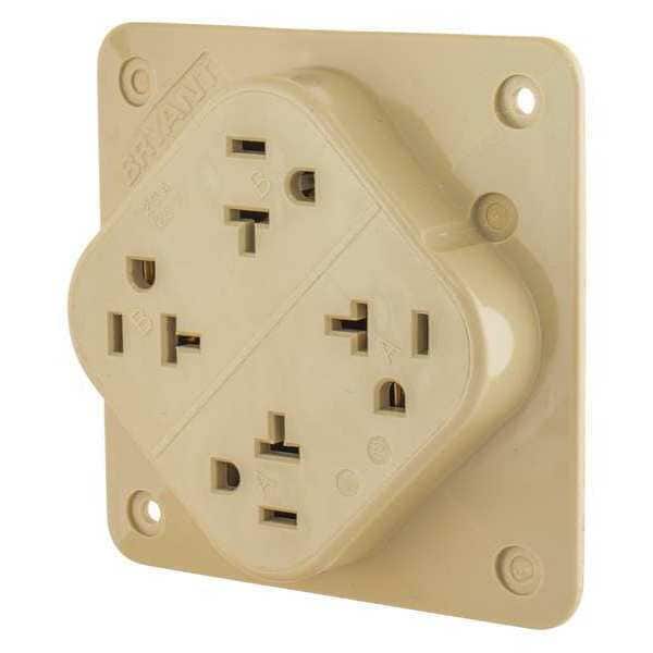 Receptacle, Connection Orientation Straight, Cover Type No Cover, Current Rating 20 A, GFCI No, Grounding Grounded, Housing Color Ivory, Housing Material Composite, Mount Type Surface, NEMA Receptacle Configuration 5-20R, Number of Gangs 1, Number of Poles 2, Number of Wires 3, Phase Single, Polarized Yes, Receptacle Type Quad, Resistance Properties Impact Resistant, Standards CSA Certified, UL Listed, Voltage Rating 125V AC, Wire Connection Type Screw Terminals, Wiring Method Back, Side