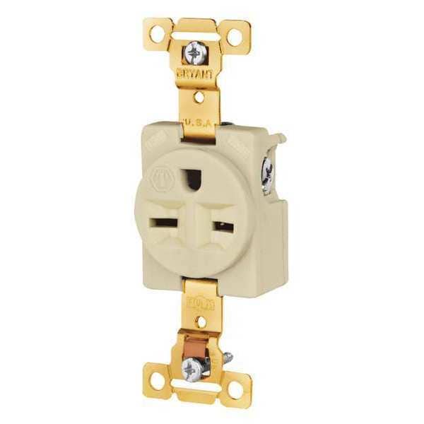 Receptacle, Connection Orientation Straight, Cover Type No Cover, Current Rating 15 A, GFCI No, Grounding Grounded, Housing Color Ivory, Housing Material Nylon, Mount Type Flush, NEMA Receptacle Configuration 6-15R, Number of Gangs 1, Number of Poles 2, Number of Wires 3, Phase Single, Polarized Yes, Receptacle Type Single, Resistance Properties Corrosion Resistant, Standards CSA Certified, UL Listed, Voltage Rating 250V AC, Wire Connection Type Screw Terminals, Wiring Method Back, Side, AFCI No