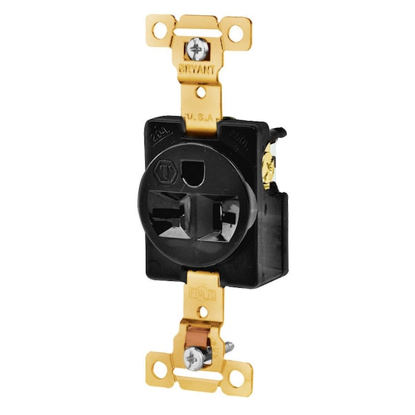 Straight Blade Devices, Receptacles, Single, Commercial/Industrial Grade, 2-Pole 3-Wire Grounding, 20A 250V, 6-20R, Black, Single Pack