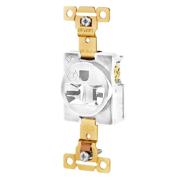 Straight Blade Devices, Receptacles, Single, Commercial/Industrial Grade, 2-Pole 3-Wire Grounding, 20A 250V, 6-20R, White, Single Pack