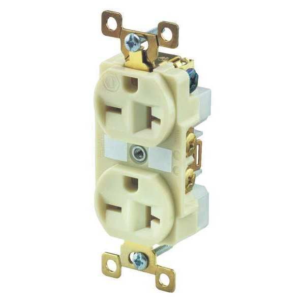Receptacle, Connection Orientation Straight, Cover Type No Cover, Current Rating 20 A, GFCI No, Grounding Grounded, Housing Color Ivory, Housing Material Nylon, Mount Type Flush, NEMA Receptacle Configuration 6-20R, Number of Gangs 1, Number of Poles 2, Number of Wires 3, Phase Single, Polarized Yes, Receptacle Type Duplex, Resistance Properties Corrosion Resistant, Standards CSA Certified, Federal Specification W-C-59, NEMA WD-1 and WD-6, UL 498, UL Listed, Voltage Rating 250V AC