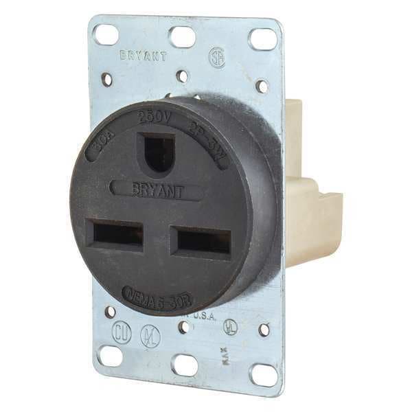 Receptacle, Connection Orientation Straight, Cover Type No Cover, Current Rating 30 A, GFCI No, Grounding Grounded, Housing Color Black, Housing Material Thermoplastic, Mount Type Flush, NEMA Receptacle Configuration 6-30R, Number of Gangs 1, Number of Poles 2, Number of Wires 3, Phase Single, Polarized Yes, Receptacle Type Single, Resistance Properties Impact Resistant, Standards CSA Certified, UL Listed, Voltage Rating 250V AC, Wire Connection Type Screw Terminals, Wiring Method Back, AFCI No