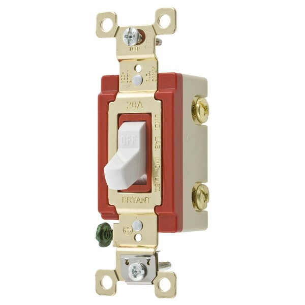Toggle Switch, General Purpose AC, Single Pole, 20A 120/277V AC, Back and Side Wired, White