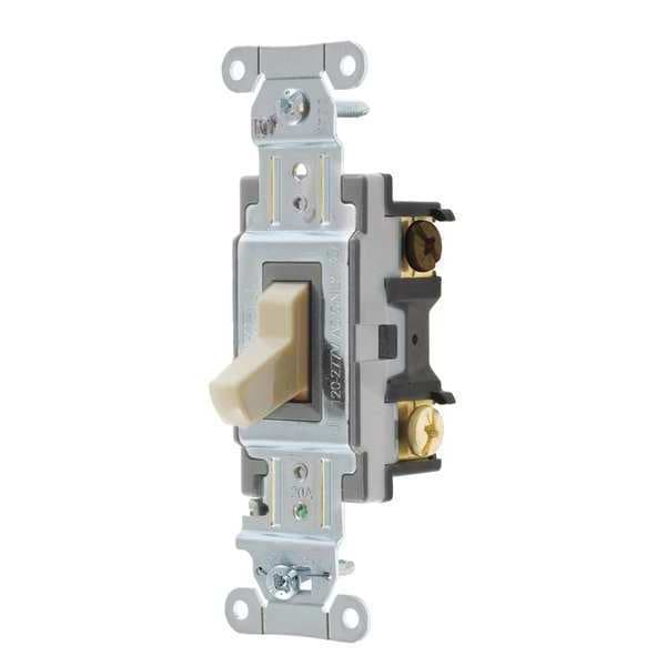 Wall Switch, Color Ivory, Current Rating 20 A, Switch Function Maintained, Switch Type 3-Way, Voltage Rating 120/277V AC, Wiring Method Back, Side, Horsepower Rating 2 hp, Locking Style Not Applicable, Number of Switches 1, Standards CSA Certified, Switch Style Toggle, Wire Connection Type Screw Terminals, Market Commercial