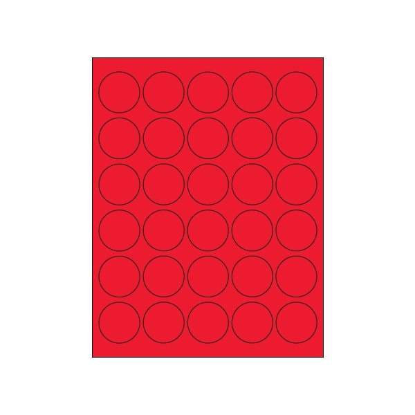 1-1/2'' Fluorescent Red Circle Laser Labels, 3000PK
