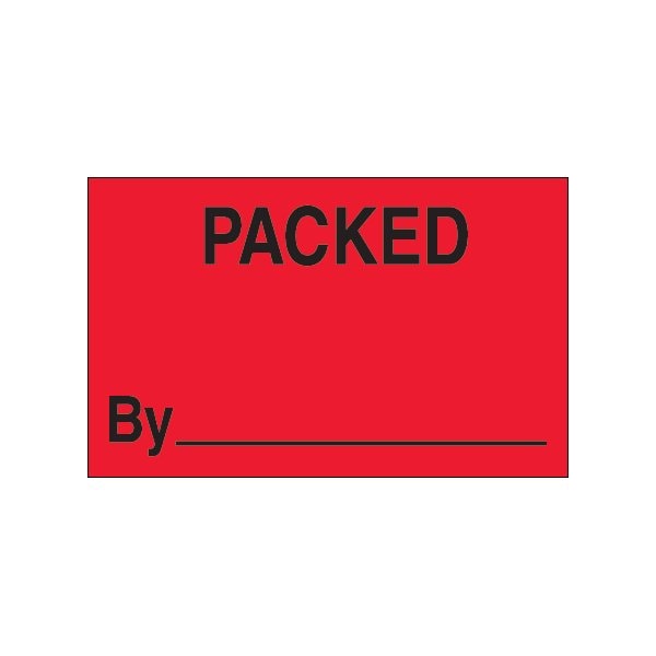 1 1/4 x 2'' - ''Packed By'' Fluorescent Red Labels
