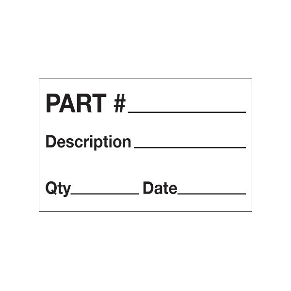 1 1/4 x 2'' - ''Part# - Description - Qty - Date'' Labels