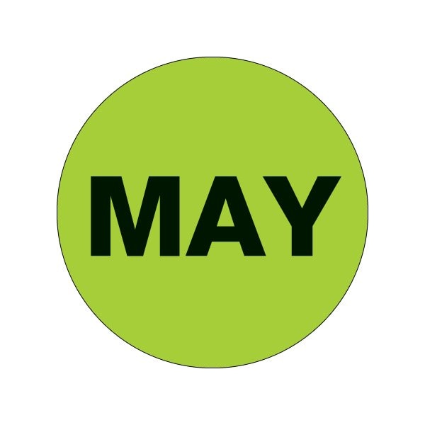 1'' Circle - ''MAY'' Fluorescent Green Months of the Year Labels