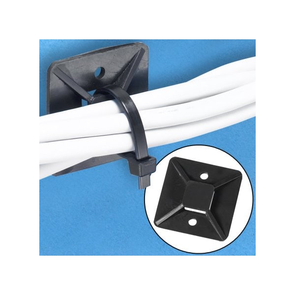 Secure cables to walls, ceilings, desks and floors. Adhesive backing attaches to clean and dry metal, plastic, glass, paper and painted surfaces; Available in Natural or Black; 100 mounts per case. This product is equivalent to part number: S-12411BL. Sold in a quantity of 100 per case.
