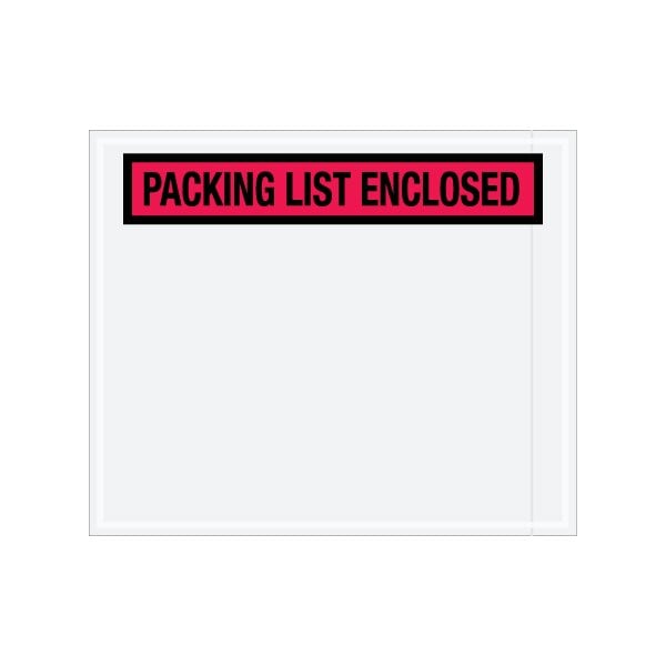 Pressure sensitive packing list envelopes secure and protect documents that are attached to the outside of shipments. Panel face, colored Packing List Envelopes are pre-printed with ''Packing List Enclosed'' on heavy 2 Mil poly; Hot melt adhesive backing provides strong adhesion to paper and corrugated products; Envelopes open along the first dimension. Sold in a quantity of 500 per case.