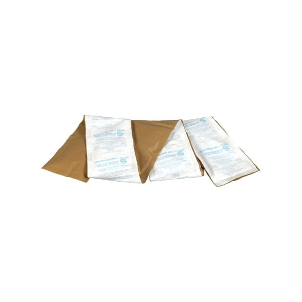 Specially designed desiccants aimed to protect cargo during shipment by aggressively absorbing moisture in the air. Eliminates mold, corrosion, mildew, spoilage, warping and other harmful effects of moisture by reducing dew point temperature thus preventing condensation; Feature adhesive strips that attach to containers or warehouse walls. This product is equivalent to part number: S-7933. Sold in a quantity of 72 per case.