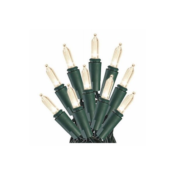SYLVANIA 100 Lt STAY-LIT Warm White LED Set. Green Wire. Traditional Glass Look bulbs. 12 in. Lead 4 in. spacing 3 in. End. Indoor/Outdoor. Color Box. UL Listed. Includes 2 Spare bulbs and 1 Spare fuse and 2 Spare Reflectors.