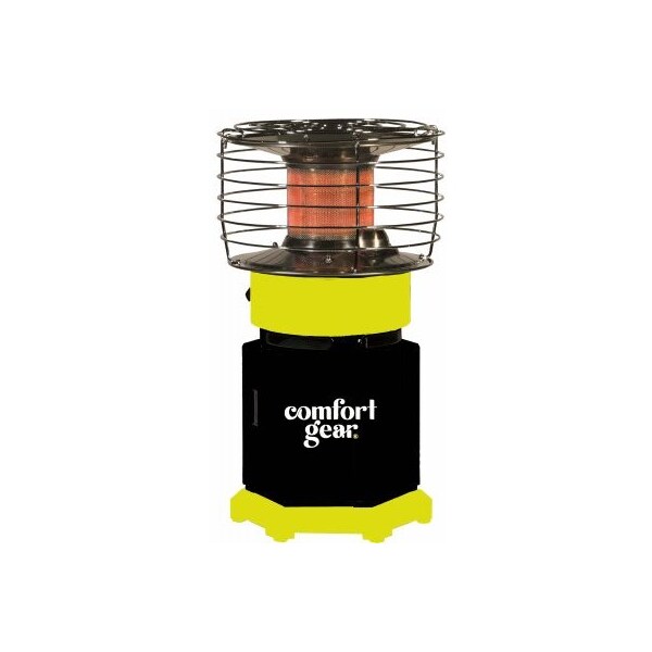 Comfort Gear 7500-10000 BTU Portable 360 Degree Single Tank Propane LP Heater Yellow/Black Piezo Ignition Heats In A 360 Degree Radius Built In Oxygen Depletion Sensor Safety Tip Over Shut Off Protective Grill Guard Single 1 Button Lighting/Heat Control Swivel Valve For Easy Loading Utilizes Disposable 1 LB Propane Bottle Built In Carry Handle For Easy Mobility 250 SQFT Outdoor & Indoor Options.