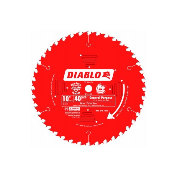 Diablo 10x40 General Purpose Circular Saw Blade Value Pack Diablo's General Purpose Blade Is Ideal For Cutting Oak, Pine, Plywood, Pressure Treated Lumber And Beams An Excellent Choice For Table Miter Saws, Diablo's Blade Leaves A Smooth Cut In A Variety Of Applications, Reducing The Need To Change Blades Between Tasks Use It For Rip Cuts With A Smoother Finish Than Dedicated Ripping Blades, Or Make Quality Crosscuts In Solid Wood Or Plywood Great For Both Sliding And Chop Style Miter Saws As Well As Table Saws Tico HiDensity Carbide Specifically Designed For Each Application To Increase Performance PermaSHIELD NonStick Coating Protects From Heat, Gumming, Corrosion