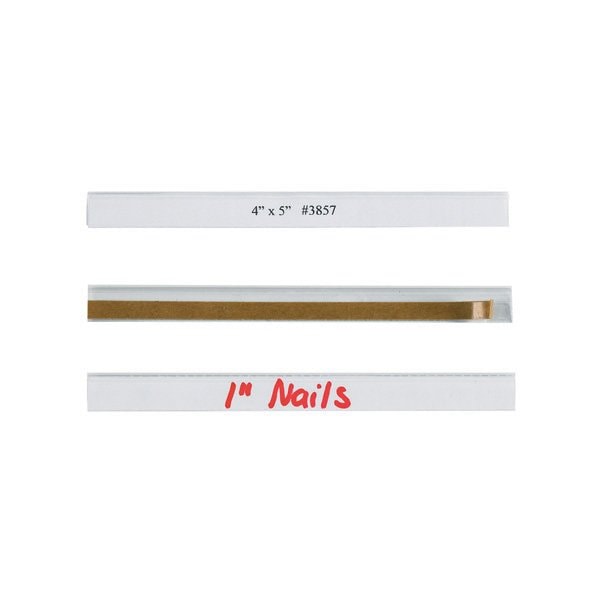 The best value for high volume applications. Top-loading design makes these self-adhesive, plastic label holders ideal for organizing any storage area; Self-adhesive backing holds onto shelves, racks and bins; Can be easily cut with scissors to desired length; Bar code compatible; Made from clear, durable, UV treated, heavy-duty PVC; White inserts included; Additional inserts available. Sold in a quantity of 50 per case.