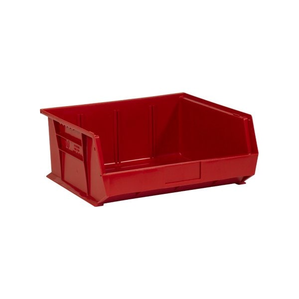 Keep small parts organized. Durable plastic construction; Flat front panel is perfect for labeling; Bins stack to save space; Maximize the efficiency of bins by using Bin Divider stock number BIND147; May be used with Bin Organizers; Sold by the individual bin in case quantities; Inside Dimensions: 14 x 14 3/4 x 6 3/4''; Fits shelf size 14 3/4''; Optional Label Holders available. This product is equivalent to part number: S-12420R. Sold in a quantity of 6 per case.