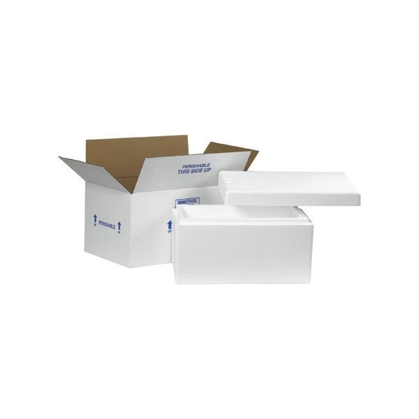 Maintains the insulation and integrity of your products that present temperature constraints. Each kit includes a pre-assembled 200#/ECT-32 white corrugated carton with a seamless molded EPS foam container and tight fitting lid; Shippers are light-weight and can be reused; Cartons are printed with Rush, Perishable and This Side Up arrows shipping instructions. This product is equivalent to part number: S-13393.