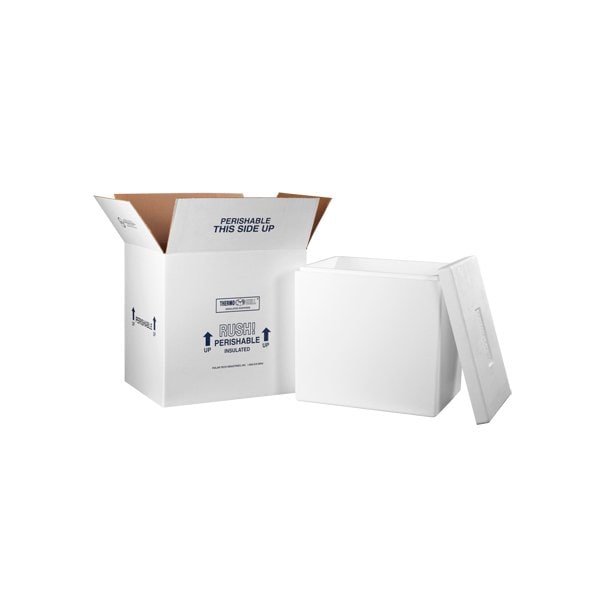 Maintains the insulation and integrity of your products that present temperature constraints. Each kit includes a pre-assembled 200#/ECT-32 white corrugated carton with a seamless molded EPS foam container and tight fitting lid; Shippers are light-weight and can be reused; Cartons are printed with Rush, Perishable and This Side Up arrows shipping instructions. This product is equivalent to part number: S-15182.