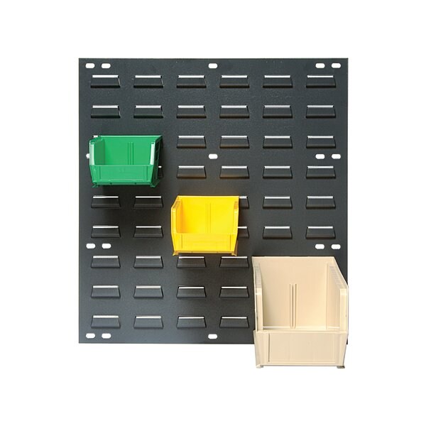 Maximize storage capacity in a small amount of space. Customize your unit by choosing the bin sizes of your choice; Wall Mounted Panel Rack saves floor and workbench space; 175 pound capacity; Stack & Hang Bins sold separately. This product is equivalent to part number: H-4685.