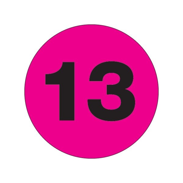 2'' Circle - ''13'' Fluorescent Pink Number Labels