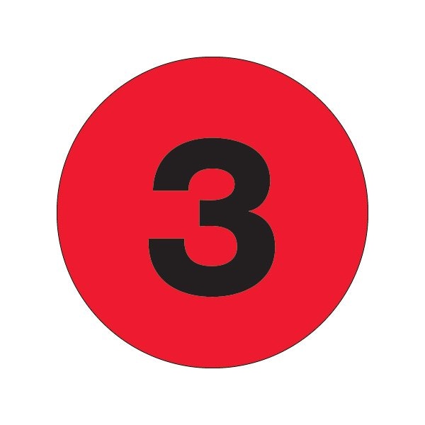 2'' Circle - ''3'' Fluorescent Red Number Labels