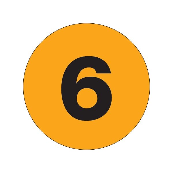 2'' Circle - ''6'' Fluorescent Orange Number Labels
