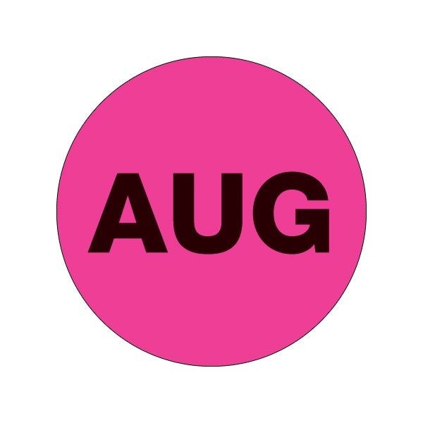 2'' Circle - ''AUG'' Fluorescent Pink Months of the Year Labels