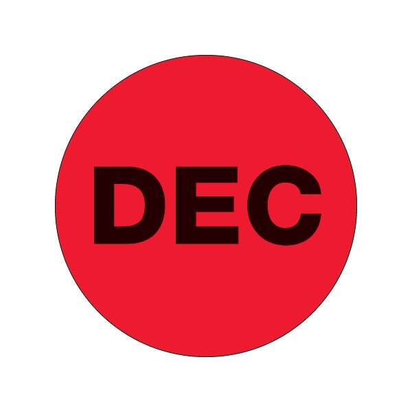 2'' Circle - ''DEC'' Fluorescent Red Months of the Year Labels