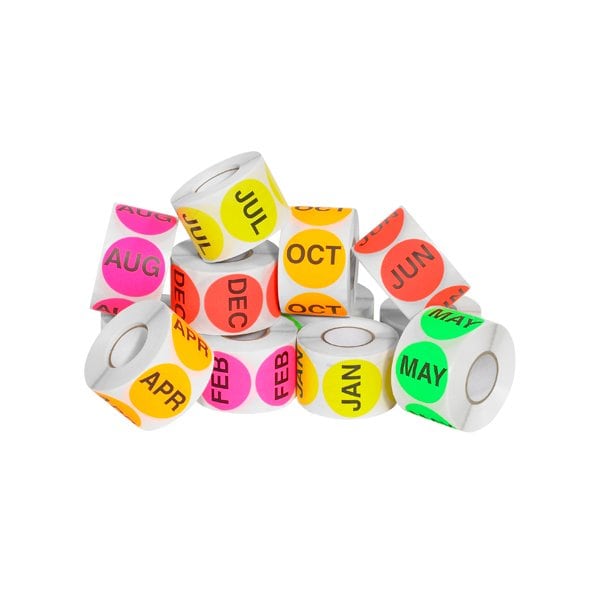 Convenient, pre-packed boxes of all 12 months of the year labels. Contains one roll of each month. This product is equivalent to part number: S-8155. Sold in a quantity of 12 per case.