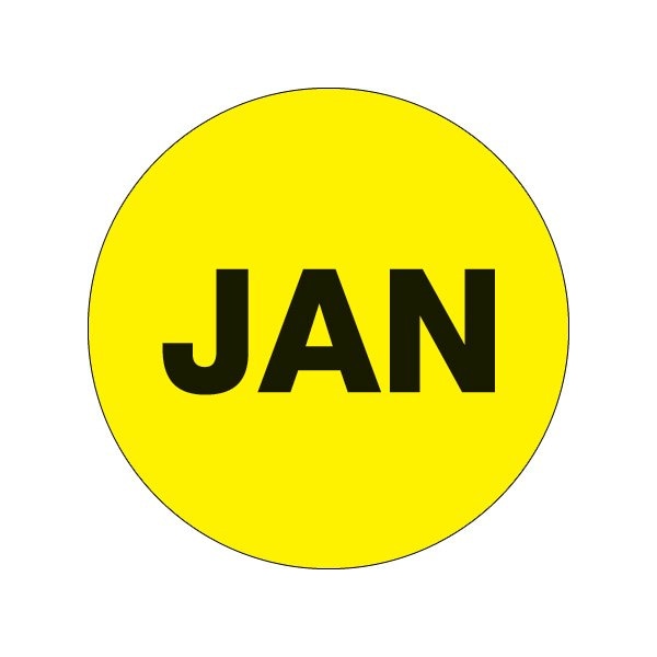 2'' Circle - ''JAN'' Fluorescent Yellow Months of the Year Labels