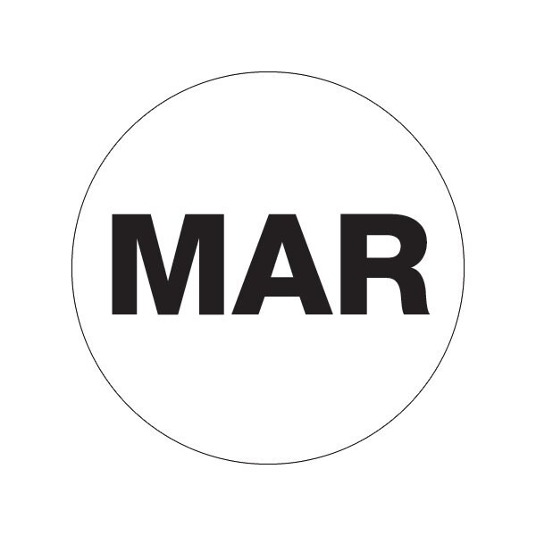 2'' Circle - ''MAR'' White Months of the Year Labels