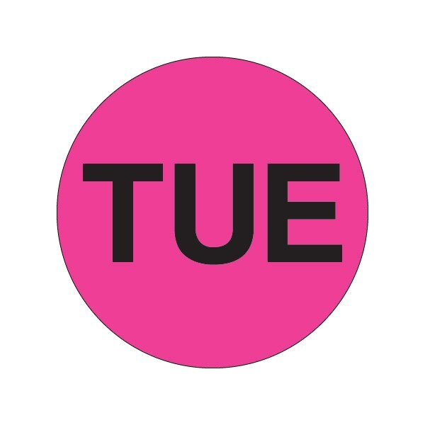 2'' Circle - ''TUE'' Fluorescent Pink Days of the Week Labels