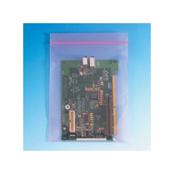 Pink Anti-Static Bags protect electronic components from static build-up as well as dirt, dust and moisture. Bags are manufactured from pink, anti-static polyethylene film; Zipper extends the width of the bag to secure contents. This product is equivalent to part number: S-13008. Sold in a quantity of 1000 per case.